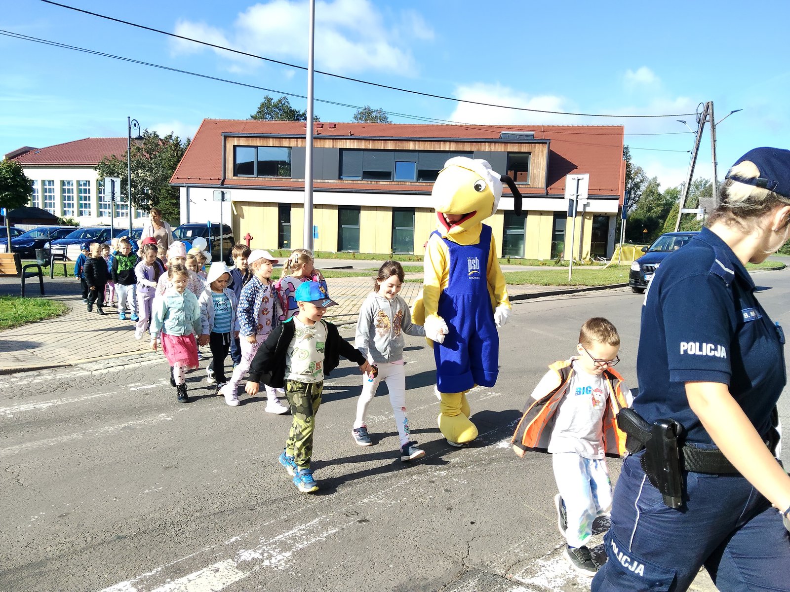Na głównym parkingu w Krzeszowie nasze dzieci z przedszkola brały udział w spotkaniu "Bezpieczny przedszkolak" z policjantami z Komendy Powiatowej Policji w Kamiennej Górze. Głównym celem spotkania było przypomnienie podstawowych zasad bezpieczeństwa. Policjanci przybliżyli dzieciom podstawowe zasady bezpiecznego poruszania się po drogach, przypomnieli numery alarmowe oraz zasady zachowania się podczas spotkania z nieznajomym. Dużą atrakcją było prawidłowe przechodzenie po pasach w towarzystwie "Mrówki PSB".
